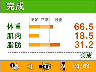浮肿指数,节段性浮肿指数, 内脏脂肪面积(18岁以下未成年人显示成长曲线)营养评估(蛋白质,无机盐,体脂肪), 均衡分析,身体力量,健康诊断, 目标体重,体重控制脂肪控制,肌肉控制,健康评估,